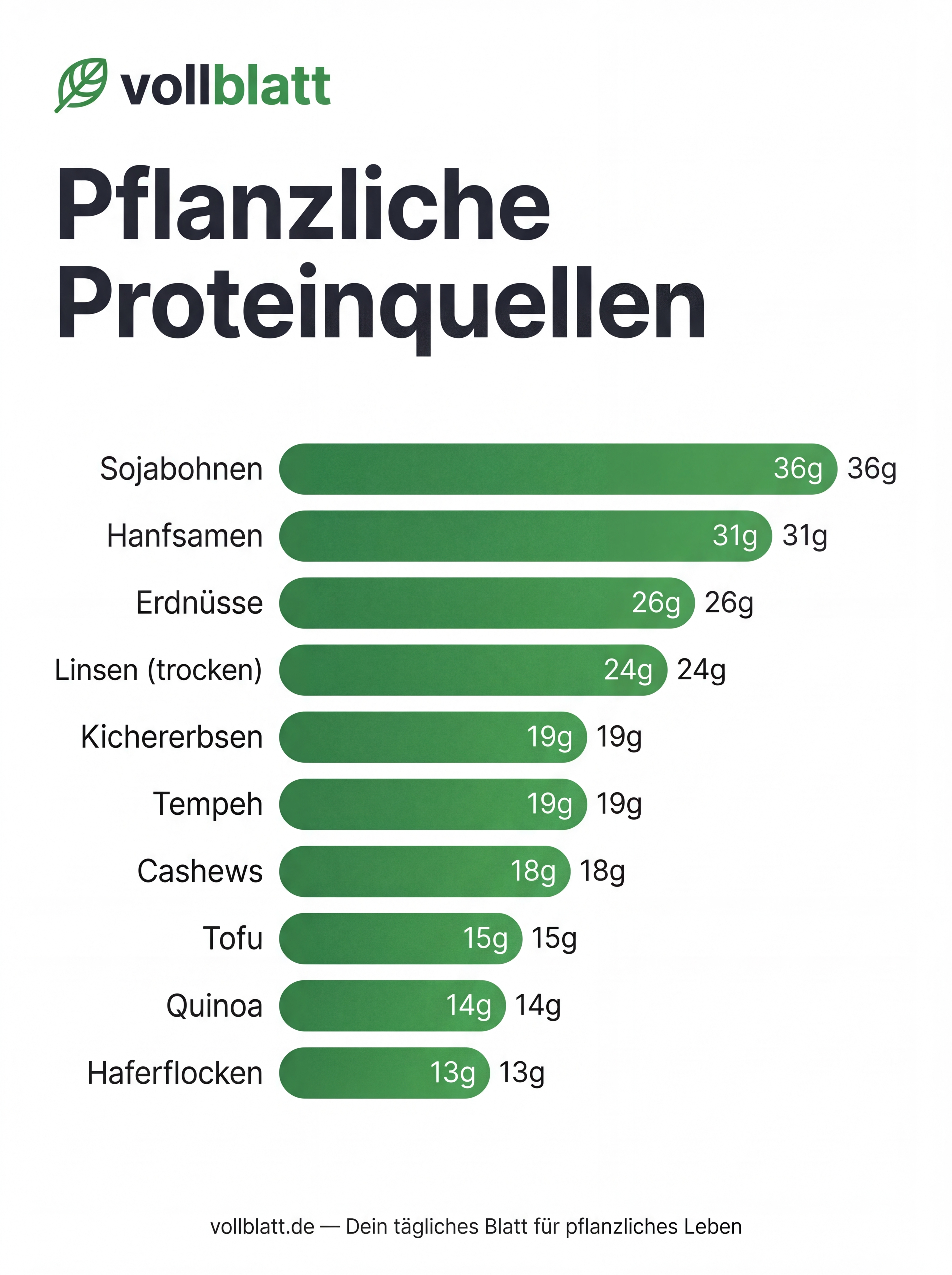 Die besten pflanzlichen Proteinquellen im Vergleich: Gramm Protein pro 100g, biologische Wertigkeit und Zubereitungstipps.